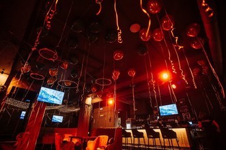 Дизайнеры оформили помещение клуба в ультрасовременном стиле: тёмные тона, приглушенное освещение, мягкие диваны и кресла, уютные столики, барная стойка с высокими стульями, оригинальные элементы декора.